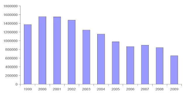 Per l'anno 2009 i dati al momento si fermano ad agosto quindi ho effettuato una estrapolazione in base ai