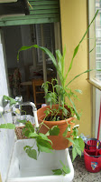 Il vaso contiene una pianta di mais, due pomodori un paio di piante di fagiolo ed altro.